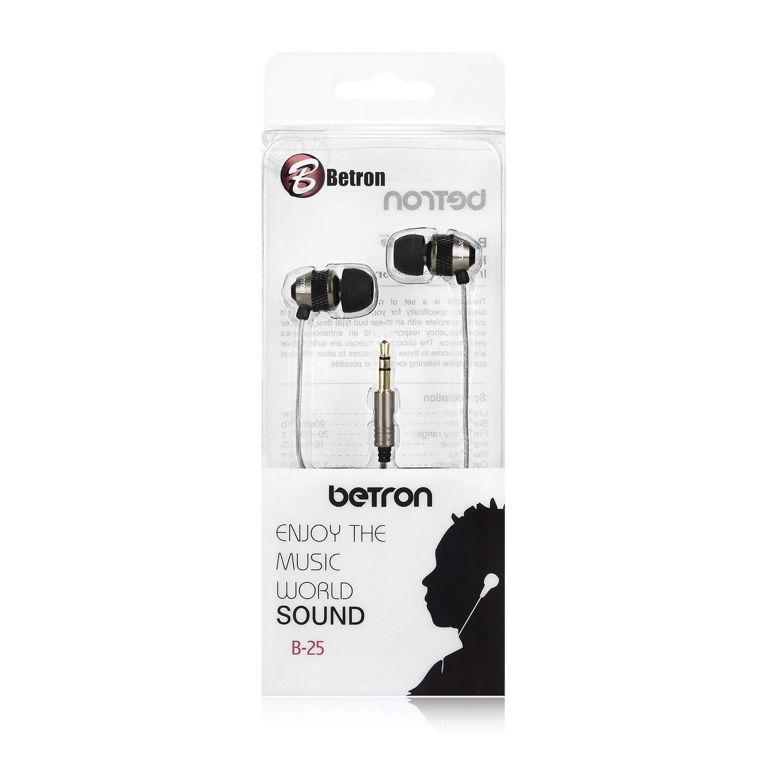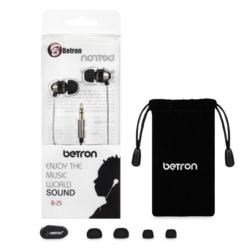 B-25 sleek earphones feature Noise isolating technology that will allow you to flow in your world of MusicEar adapters in different sizes for excellent ear canal fit and ambient noise attenuation. 3 Noise isolating earbuds are included SMALL / MEDIUM / LARGEPure sound and powerful bass. Cable Length 1.2 metersB-25 earphones will bring your music to life. High powered dynamic speaker systems for an outstanding audio performanceBetron B-25 Earphones will deliver deep bass and crystal clear acoustics from 9mm High Definition speaker driver. Optimised for MP3, iPad, iPod, iPhone and portable media playersB-25 sleek earphones feature Noise isolating technology that will allow you to flow in your world of MusicEar adapters in different sizes for excellent ear canal fit and ambient noise attenuation. 3 Noise isolating earbuds are included SMALL / MEDIUM / LARGEPure sound and powerful bass. Cable Length 1.2 meters