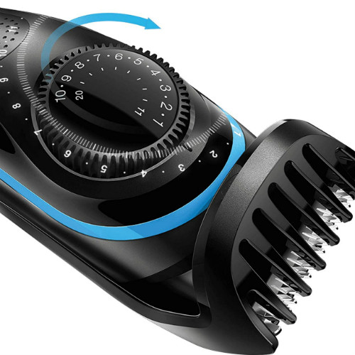 The short beard comb helps you maintain short to medium beards (0.5 – 10mm) and even clips your hair. Remove the comb for an even closer (0.5mm) trim. The precision dial allows you to achieve the exact desired length in 0.5mm steps.