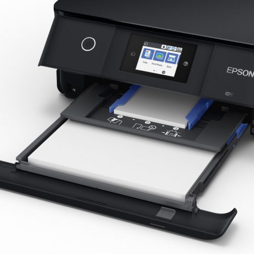 EPSON EXPRESSION PHOTO XP-8500Sophisticated equipment doesn’t need to take up lots ofspace; this wireless photo printer produces high-quality photos within asurprisingly compact and small footprint. It’s stylish too, with sleek cleanlines that make it look great from every angle. Photo enthusiasts are sure to appreciate the versatile rangeof features that this all-in-one photo printer offers. Treasured memories canbe kept safe thanks to its high-quality Claria Photo HD Ink, which producesphotos that can last for 300 years in a photo album. It’s even easy to printfrom smartphones and tablets using Epson’s mobile printing options, in additionto a large LCD touchscreen. Key Features?Compact and stylish: Small footprint and looks great fromall angles.?Claria Photo HD inks: Create superior quality, long-lastingphotos at home.?Flexible: Wi-Fi and easy mobile printing.?Dual paper trays: One for A4 and another for photo paper.?Versatile: Rear speciality media feed and CD/DVD printing. SpecificationTechnology Printing Method Epson Micro Piezo™ print head Nozzle Configuration 180 Nozzles black, 180 Nozzles per colour Minimum Droplet Size 1.5 pl, With Variable-Sized Droplet Technology Ink Technology Claria™ Photo HD Ink Printing Resolution 5,760 x 1,400 dpi All-in-One Functions Print, Scan, Copy Print Printing Speed ISO/IEC 24734 9.5 pages/min Monochrome, 9 pages/min Colour Printing Speed 10 Seconds per 10 x 15 cm photo (Epson Premium Glossy PhotoPaper), 32 pages/min Colour (plain paper), 32 pages/min Monochrome (plainpaper) Colours Black, Cyan, Light Cyan, Yellow, Magenta, Light Magenta Scan Scanning Resolution 1,200 dpi x 4,800 dpi (Horizontal x Vertical) Scanner type Contact image sensor (CIS) Paper / Media Handling Number of paper trays 2 Paper Formats Legal, Letter, 16:9, 13 x 18 cm, 10 x 15 cm, No. 10(Envelope), DL (Envelope), C6 (Envelope), B5, A6, A5, A4, 9 x 13 cm, 13 x 20cm, 20 x 25 cm Duplex Yes (A4, plain paper) Print Margin 0 mm top, 0 mm right, 0 mm bottom, 0 mm left (Wherevermargin is defined. Otherwise 3mm top, left, right, bottom.) Paper Tray Capacity 100 Sheets Standard, 20 Photo Sheets Rear paper path (special media) Yes Media Handling Automatic duplex (A4, plain paper), Borderless print, CD/DVDprint, Rear specialty media feed, Thick Media Support General Energy Use 7.2 W (Ready), 0.1 W (Power off), ENERGY STAR® qualified, 19 W (standalonecopying, ISO/IEC 24712 pattern), 0.6 W (sleep mode) Supply Voltage AC 220 V – 240 V Product dimensions 349? x 340 x 142 mm (Width x Depth x Height) Product weight 6.7 kg Noise Level 35 B (A) with Epson Premium Glossy Photo Paper / Photo RPMmode – 4.7 dB (A) with Epson Premium Glossy Photo Paper / Photo RPM mode Compatible Operating Systems Mac OS X 10.6.8 or later, Windows 10, Windows 7, Windows 8,Windows 8.1, Windows Vista, Windows XP SP3, XP Professional x64 Edition SP2 Included Software Epson Easy Photo Print, Epson Print CD Interfaces USB, WiFi, Wi-Fi Direct WLAN Security WEP 64 Bit, WEP 128 Bit, WPA PSK (TKIP), WPA PSK (AES) Mobile and Cloud printing services Apple AirPrint, Google Cloud Print, Epson Connect (iPrint,Email Print, Remote Print Driver, Scan-to-Cloud, Facebook print) What’s in the box Individual Ink Cartridges, Main unit, Power cable, Setupguide, Software (CD), Warranty document Colour Black Other Features LCD screen Type: Colour, Touchscreen, Diagonal: 6.8 cm Memory Cards SDXC, SDHC, SD, MiniSDHC, MiniSD, MicroSDXC, MicroSDHC,MicroSD (* Adaptor required, not supplied in box) Features Touchscreen, Red eye removal, Photo Enhance, Direct printfrom USB, Wireless PictBridge