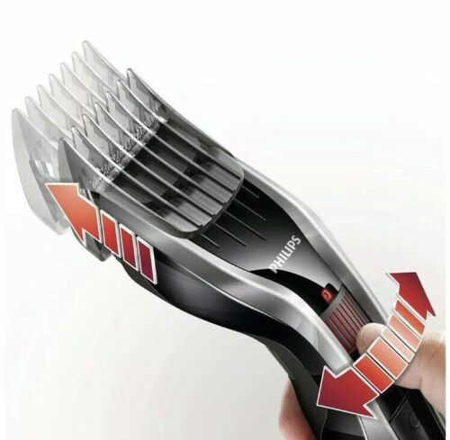 Philips Series 5000 Hair Clipper with titanium blades ensure fast, sharp cut time after time thanks to the Philips DualCut technology that cuts hair two times faster. It features self-sharpening steel blades for long-lasting performance. 24 easy lock-in length settings from 0.5 mm to 23 mm (grades 0 to 7) allow precise length control. 75 minutes run time of cordless use or use plugged in. The clipper is easy to clean – simply detach and rinse the blades and comb under the tap. Includes nose, ear and eyebrow trimmer.