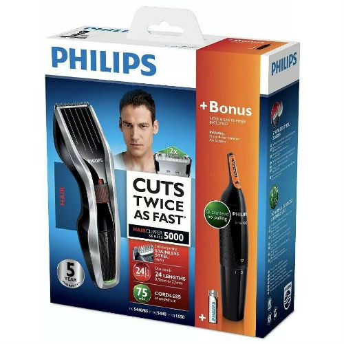 - Philips Series 5000 Hair Clipper with Titanium Blades, Nose, Ear & Eyebrow Trimmer – HC5440/93.